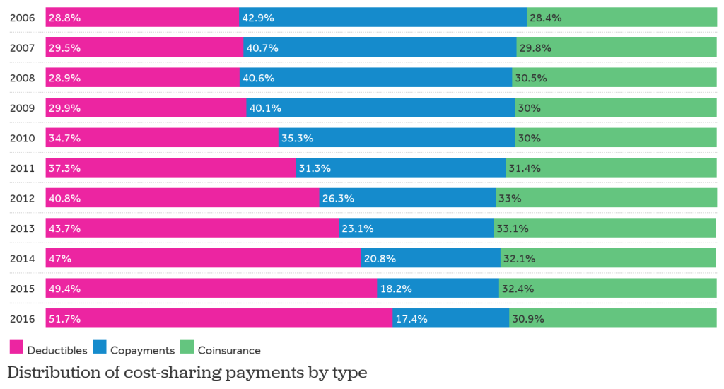 Cost-sharing between insurance providers and patients has increasingly become a topic of public discussion. In particular, the increasing proportion that enrollees are paying for healthcare has been an area of concern. For example, in the ten years from 2006 to 2016, average deductibles increased from $303 on average to over $1,200. However, when considering the … Continue reading Increases in cost-sharing payments continue to outpace wage growth