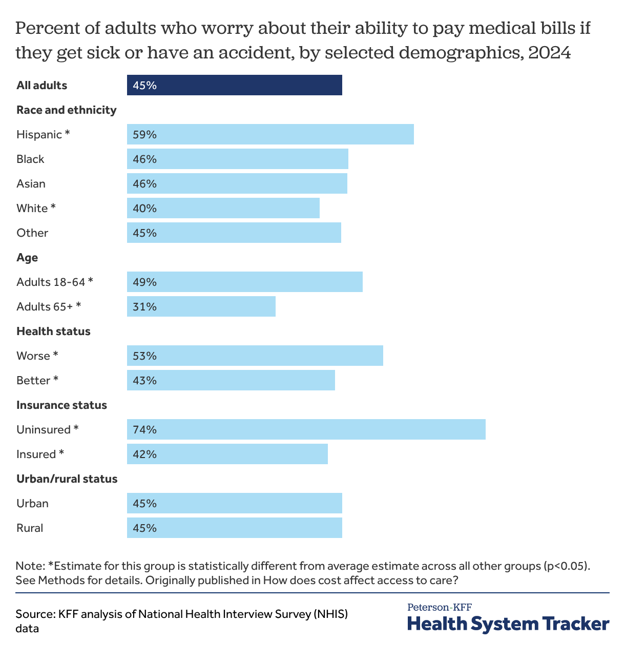 Nearly half of adults worry about their ability to pay medical bills if they get sick or have an accident