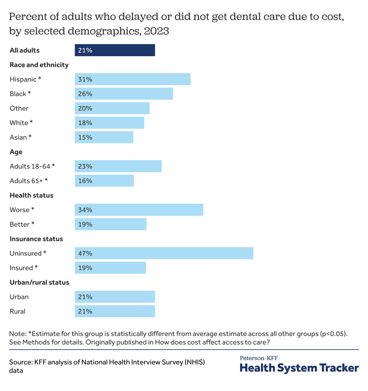 About 1 in 5 adults delayed or did not get dental care in 2023